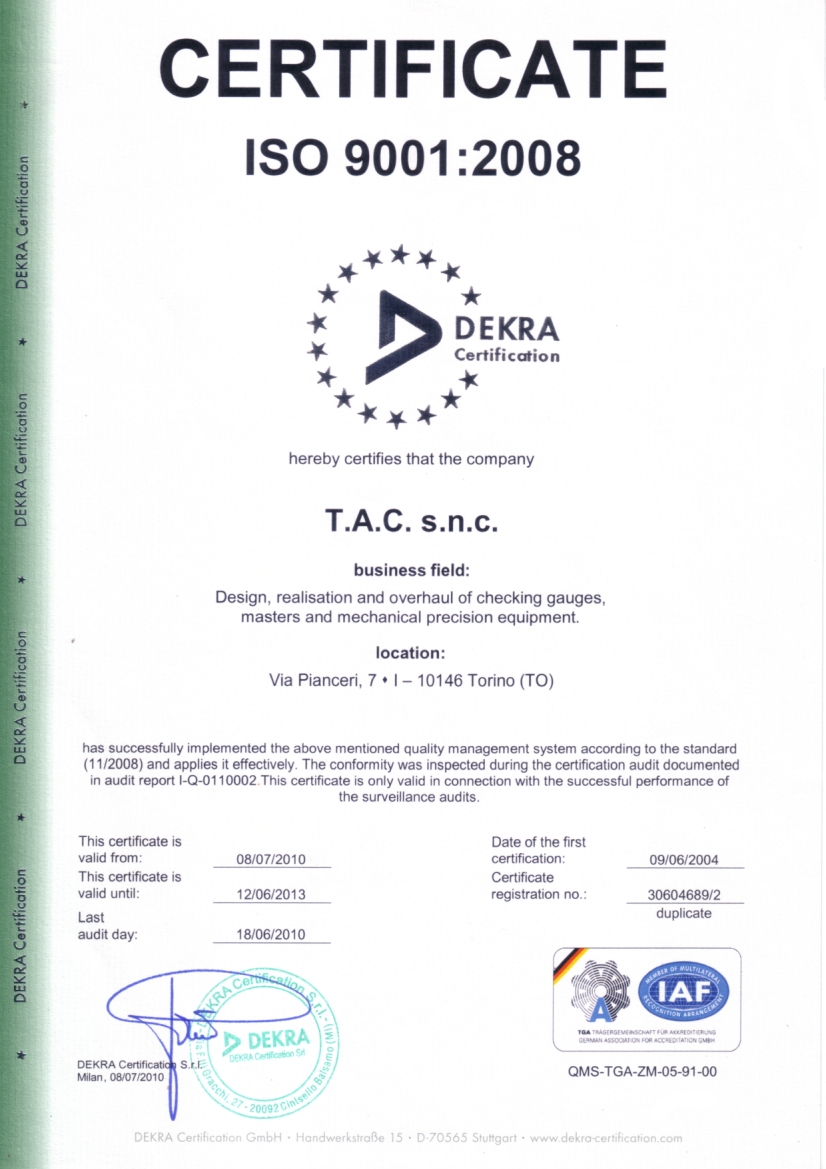TAC dans donnèe 18/06/2010 obten la mise à niveau à la norme ISO 9001:2008.